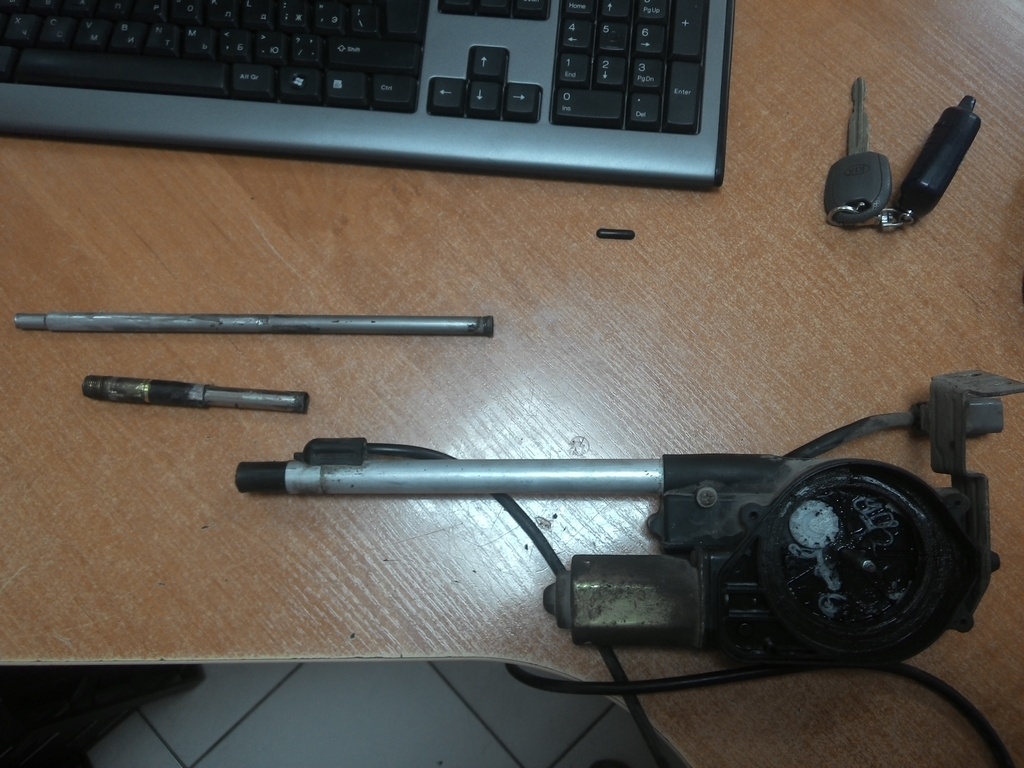 Приобрел я сие чудо инженерной мысли корейских гениев с антенной выдвинутой на 3/4 и заклинившей насмерть. Собственно заморочился мыслью разобраться в чем дело только потому, что магнитола ( пионер кстати , но ничто ни вечно под луной) перестала читать диски, включаю радио, на два км удаляюсь от город и все, только шипение в колонках и больше ничего, ну думаю все, издохла. Поменял на другую, флехи видит навигация работает а радио по прежнему на два км от города не ловит, думаю провод оборван, я на форум, нашел где место соединения под ногами пассажира спереди разобрал,смотрю разьем воткнут, ну думаю надо снимать антенну. По съему ничего сложного, освежу на всякий ( поскольку ставить штатную назад не планировал не фоткал):
