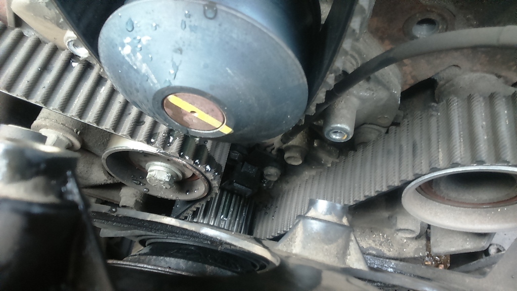 На второй фотке, у тебя, натяжной ролик, отверстиями под натяжной ключ, расположен к верху. А по мануалу должен быть сориентирован вниз. Так то может и ничего страшного, и возможно что все будет работать как надо, но при прочих равных, когда он расположен вниз, ремень грм плотнее прилегает к звезде грм коленвала, что в свою очередь исключает вероятность, того, что ремень может перескочить, на звезде к/в