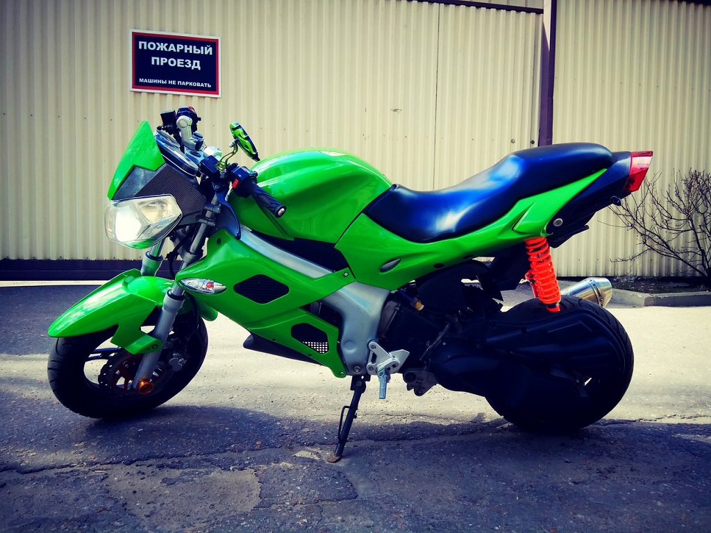 )) Отличный скутер, выглядит как спортбайк. Пробег оригинальный 1300км, недавно прошёл первое ТО. Из хорошего Армированные тормозные шланги(дисковые тормоза по кругу) Усиленные амортизаторы с регулировкой, Автозапуск, тюнинговый вариатор. Двигатель 162QMK запчасти копейки и их навалом. Из плохого, пластик боковой красился, аккумулятор лучше заменить. Продаётся т.к. не используется, документы все на руках, продаётся по договору купли продажи с последующим переоформлением.Цена 33т