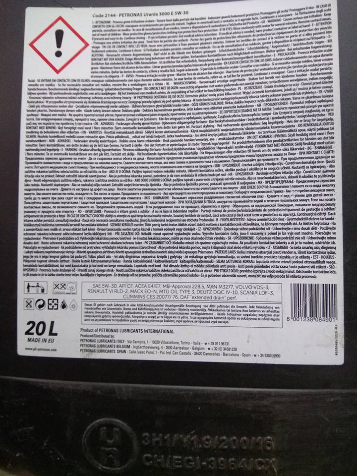 PETRONAS Urania 3000 E 5W-30 не бери, зольность 1,8%