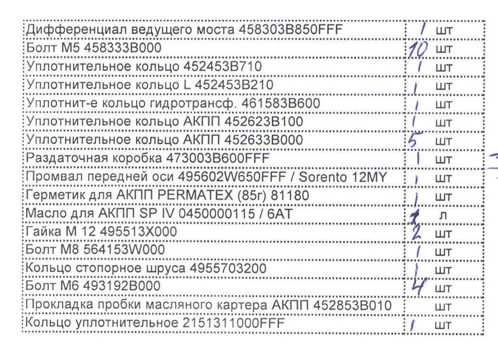 Дилеры перебирать раздатку не берутся, говорят нет спецификаций, тех регламента, и невозможно правильно отрегулировать главную пару раздатки после установки. Меняют только раздатку в сборе. Чашку диффа в АКПП меняют. Дали список запчастей. Посмотрите пожалуйста, что из этого лишнее (например промвал пока не разберут и не продефектуют, покупать не хочу), а что надо обязательно купить. За работу озвучили около 15000. Раздатка в сборе с их гарантией 67. Чашка диффа почему-то у них бьется 458303В850FFF и цена 22000 у них и 13 в других магазинах :cry: а не 458223В450 за 5500-6000 руб, как здесь у всех на форуме. Подскажите кто знает