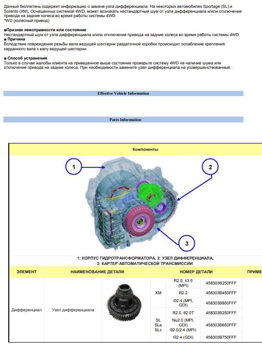 Андрей.л писал(а):Есть бюллетень КИА по диффу и раздатке, на фото из него выписка. Потом выложу весь