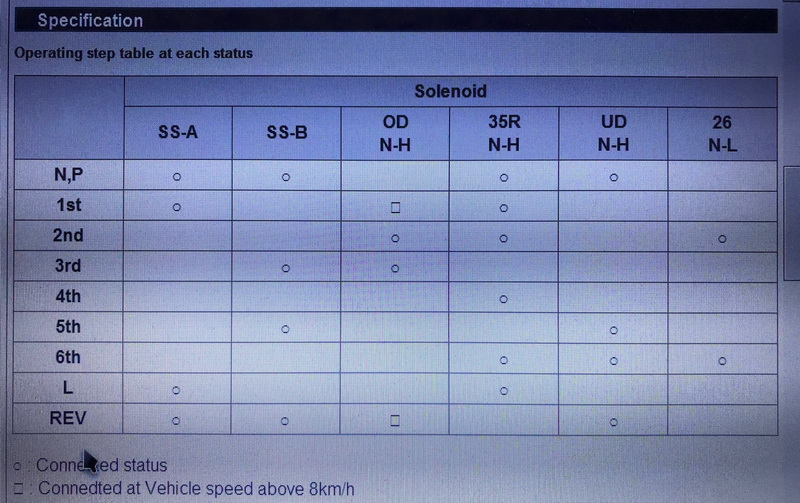 клапан SS-A - это клапан переключения. Ниже кинул таблицу зависимости. Сопротивление 0 это не обрыв а короткое замыкание. Должно быть 5,1 +/- 0,3 Ом. Но при неисправности этого соленоида должна быть ошибка P0773.
