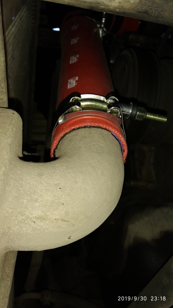 Недели три назад,совершенно случайно обнаружил,что сифонит верхний правый патрубок (первый после ТК).Дыра (реально-дырища :) ,сантиметра два с разрывом) в нижней части патрубка,поэтому и долго не замечал,т.к. патрубок сверху был чистейший.