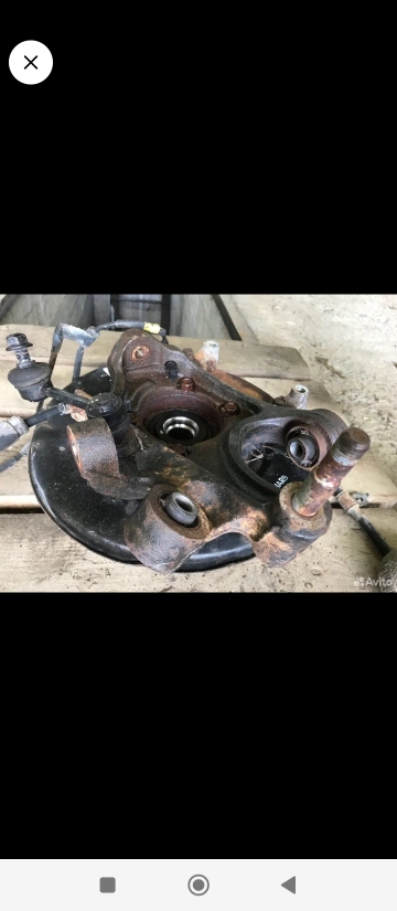 В общем, отдельно кожух (полукруг) поменять не получилось, ибо прогнило основание, варить полукруг было не к чему. В итоге были закуплены два кулака в сборе, левый и правый. Кожухи на них в идеале, на фото видно, даже этикетка с номером цела. Хотел для упрощения поменять два кулака в сборе, чтобы не разбирать по деталям, не снимать ступицы. Однако, возникла проблема - посадочное место амортизатора закисло так, что единственный выход - срезать (со слов мастера). В итоге заменен правый кожух. Левый кулак оставлен про запас, ждет своего часа (там целый кожух пока).