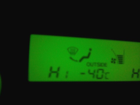 На холодном участке дороги температуру заклинило далеко за -40 (на заправке градусник показал -49).Тут уж пришлось перейти на 3 передачу и держать скорость 50-60 км/ч т.к. все задубело напрочь (тормоза, амортизаторы, рулевое) да и дорога в этом месте грунтовая и лесовозы превратили ее в стиральную доску. Все боковые окна затянуло напрочь, ну думаю перемерзает сейчас соляра и тогда попадос полный, придется вытанцовывать вокруг костра. Однако обошлось, машина не подвела за что благодарен ей безмерно. Отклинившему датчику забортной температуры радовался как ребенок, -38 уже не страшно.