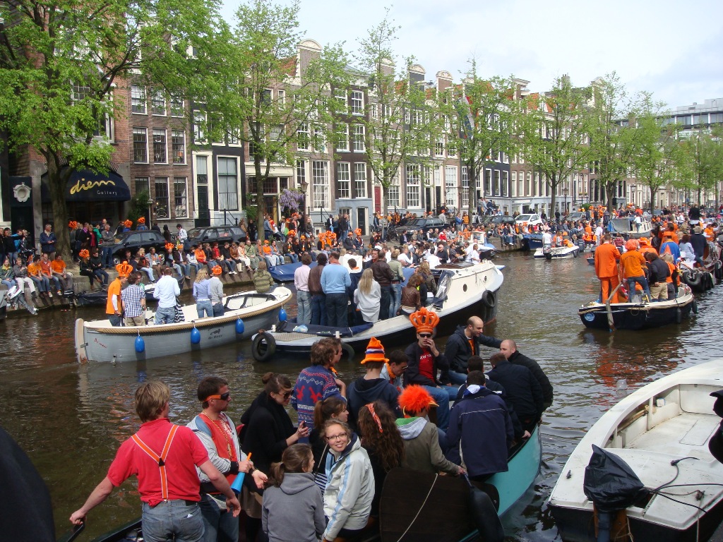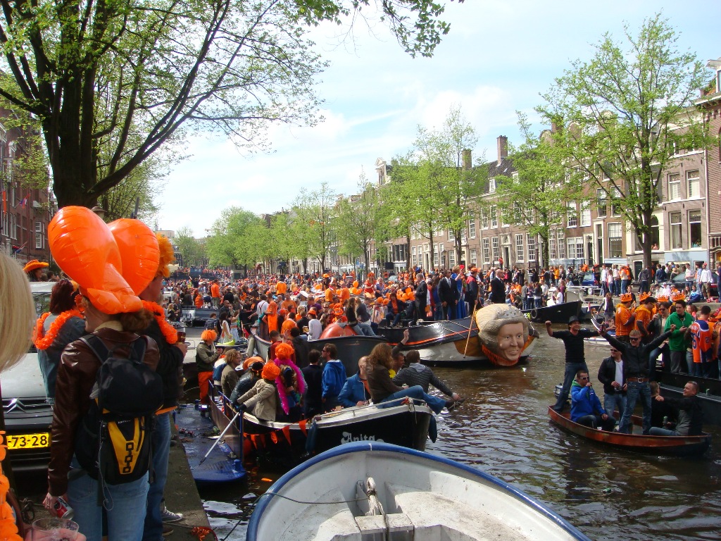 У меня знакомые как раз приехали в Амстердам на след. день после празднования ДР королевы, показывали фотки и сказали, что такого срача после праздников надо еще в России поискать. Просто кругом горы всякого мусора, дебилов тоже там хватает (надпись I AM STERDAM была раскрашена краской из балончика), основной вид транспорта у них велосипеды, и их пристегивают цепями к чему-либо, так вот кто-то взял и закинул велосипед на дерево :D