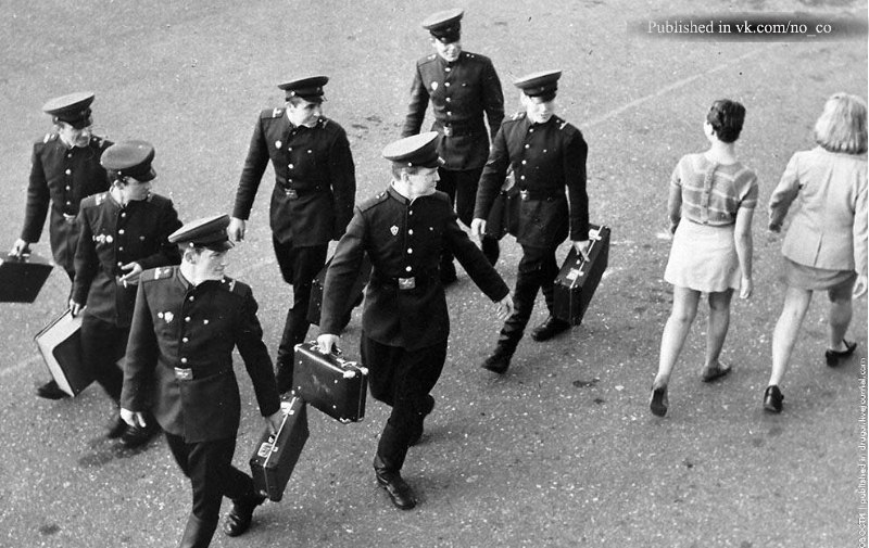 Похоже та, что справа торопится, наверное уже занята, более симпатичная на лицо и уверенная в себе (питта70-капха30). Слева более легкомысленная и открыта для общения (в меру красивая) (вата 90). Служивый в центре сразу запал на правую-блондинку, физически крепкий раздолбай, грубоват, рядовой, со значком классного специалиста наверное 3 класс, если бы не служба, сразу подкатил бы, правая не даст, а ту, что слева сразу тем же вечером. Ввторой слева, похоже младший сержант зам.ком.взвода, много значков, разряды и КМС, значит интеллектуал и бегает хорошо на короткие дистанции, из-за сигареты на длинные дыхалки не хватит (питта50-вата50), чемодан не по уставу-пижон, прическа длинней чем положено значит с командиром хорошие отношения, дамы ему интересны но не настолько, что бы все бросить, он и так популярен. Еще внимание привлекает, третий слева, подтянутый спортсмен и вроде толковый, он думает "хороши, но не мой вариант", скромный (вата30-питта30-капха40) из троих будет лучшим мужем. Остальные ефрейторы и рядовые не интересны, хотя четвертый слева, похоже неопрятный весельчак)"