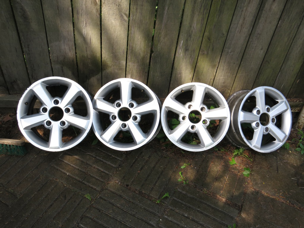 Фотки смогу сделать не раньше выходных. Диски лежат на даче. Диски не убиты. Просто купил комплект колёс с дисками. Оставил так как есть, а со своих дисков резину выкинул ранее... А диски остались.