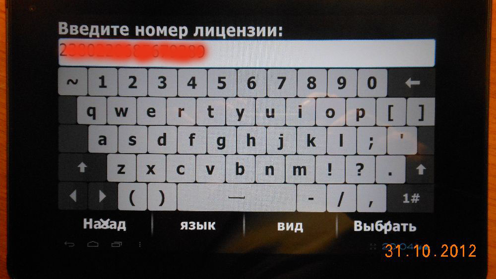 Код активации "прикрыт" экранной клавиатурой, причем она СитиГидовская, а не планшетниковская, свернуть ее нельзя. Но все таки перебрал все возможные варианты, получал в ответ только вот это... :(