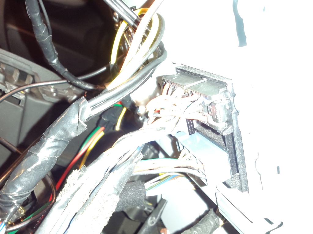 Да уж, снова я возвращаюсь к своему предположению о том, что голову пытались вставить в комплектацию без навигации. Многочисленые резанные провода в верхнем 8-пиновом коннекторе и недостающие провода (скорее всего, нет NAVI VOICE) об этом наглядно говорят. Да и "левая" (нештатная) GPS-антенна отсюда же: в комплектации без навигации ни её, ни DMB-антенны нет, вот и пришлось продавцам кроить из подручных средств. А купить нормальную антенну с правильным коннектором ума не хватило, пришлось и её резать и сажать напрямую.