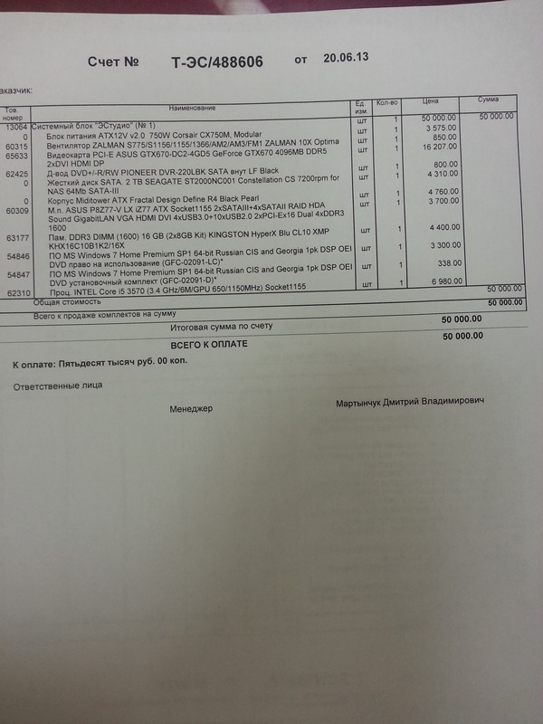 ) был запрошен у трёх относительно крупных и относительно надёжных продаванов компьютерного барахла города Москвы.Контроль совместимости и точную цену с учётом сборки и установки официальной винды выкатили сразу,через полчаса после запроса.Цена на сборку и установку ОС настолько смехотворна(в районе 500 рублей),что можно махнуть рукой и не трахаться самому,ублажая лень матушку.