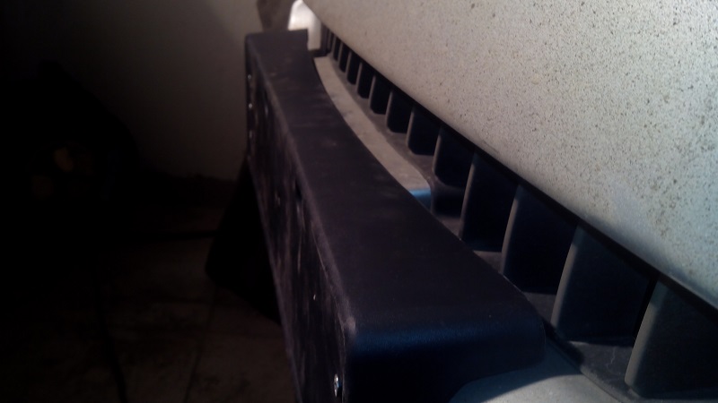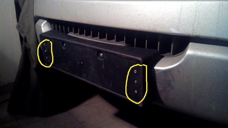 Встает плотно к бамперу и отлив совпадает, но в самой накладке, с каждой стороны отлито по 3 отверстия и с тыльной стороны они в виде трубочек, как я понял под саморезы, чтоб крепче держалось. Желтым на фото. А по середине рамки, 2 отверстия под стандартные саморезы 25мм.