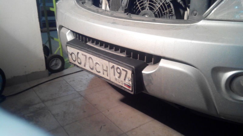 Бутерброд сделал следующий - изнутри бампера продел болты с большими шайбами, снаружи большие шайбы с гайками. Получается основа для номера. На это безобразие надеваешь номер, поверх маленькие шайбы и гайки. Захочешь, не снимешь :D