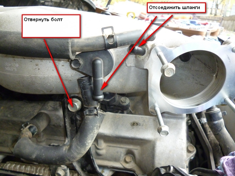 Потом в одно из отверстий на всасывающем коллекторе подсоединяют дымокур.