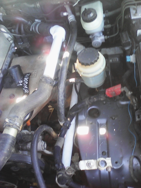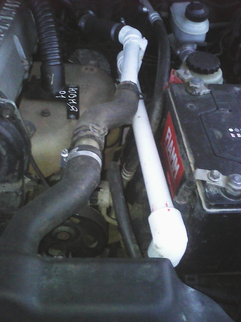 (или делителя хз как его обозвать) . Далее большой патрубок соединяем с входом радиатора. Для соединения пришлось исользовать шланг от ваза D=32мм, но на имеющеся трубки D=35мм натягивается скажем с небольшим усилием. Затем в магистраль которая идет от маленького штуцера на радиаторе к расширительному бачку, я установил 2 тройника 12-10-12 . С первого берем шланг D=8мм и одеваем его на место где посажена обратка с ДЗ, т.е. постоянно будем поливать термос разогретой ОЖ. Со второго тройника также шлангом на 8 делаем отвод на подогрев ДЗ и обратку с ДЗ соединям снова через такой же тройник на входе