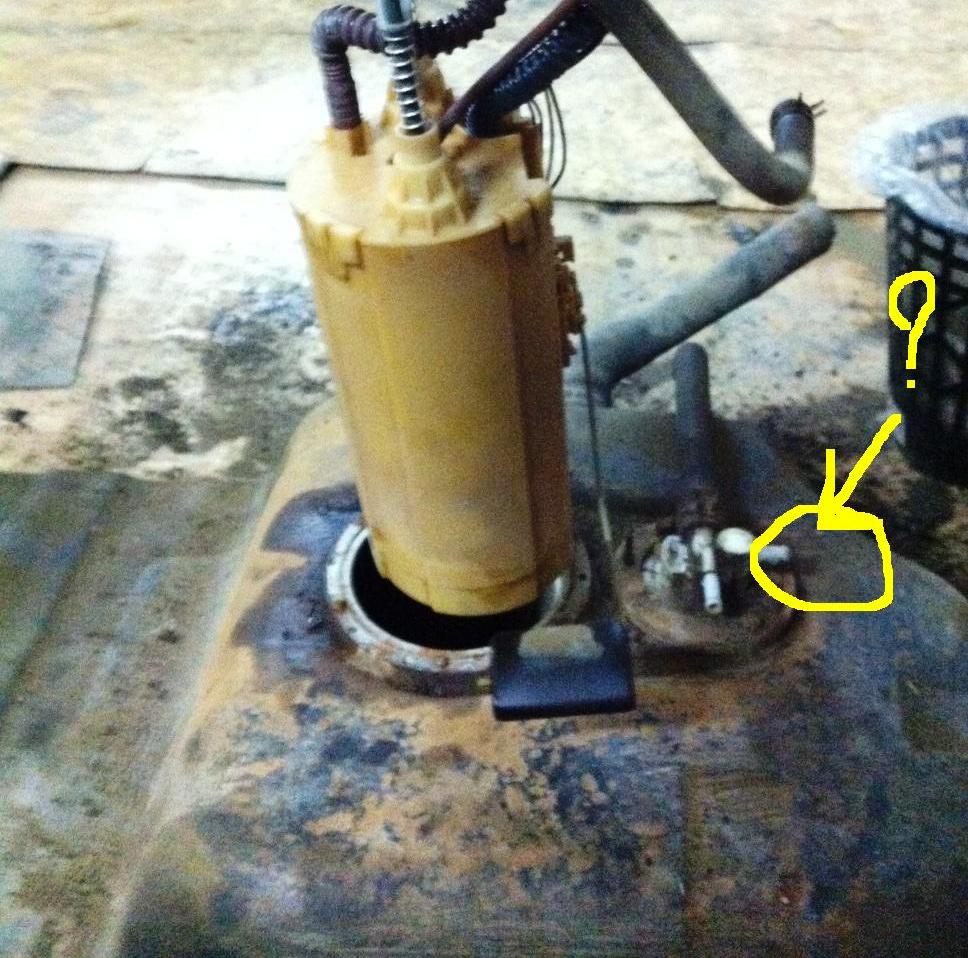 там 2е трубки топливные (которые с защёлками) и одна уходит на адсорбер системы EVAP- это с наружи,если изнутри то один сосок голый...вроде както так.