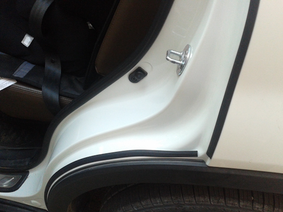 Нет, щель между задней и передней дверью, абсолютно не колхозно, в закрытом состоянии ее и не видно. Резинка одевается на переднюю кромку задней двери и плотно сидит.