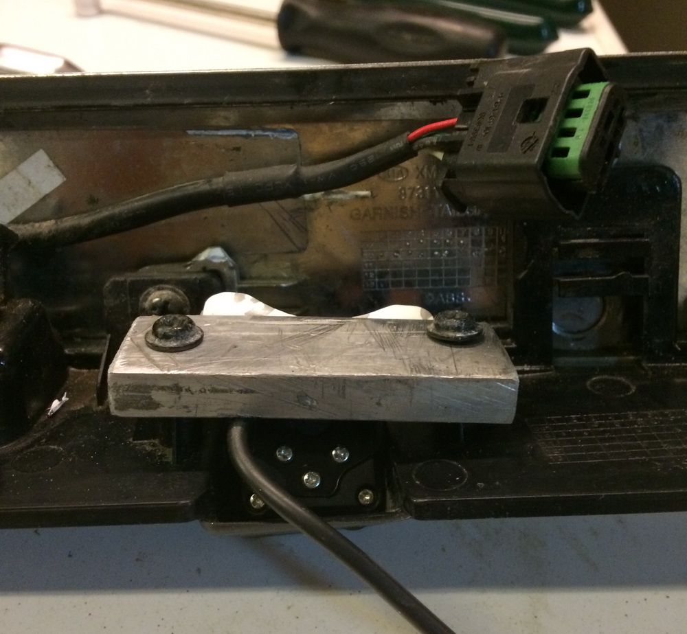 Далее про установку форсунки. Снял всю панель с камерой, подсветкой номера и кнопкой открывания двери. Около камеры просверлил в панельке (она пластмассовая) отверстие 6 мм и маленькими надфилями придал ему нужную форму по стопорные усы форсунки.