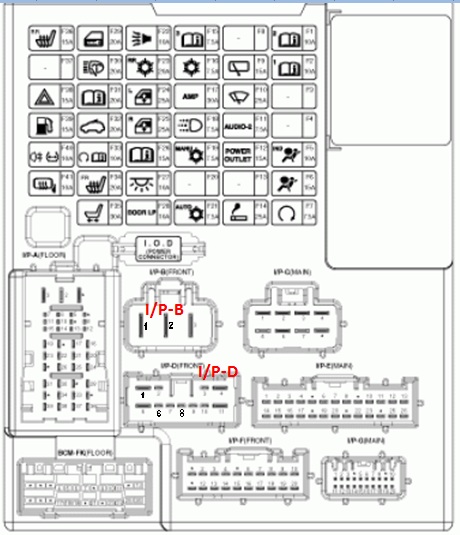 Понадобится 2 реле, клемы, два диода (из любых выпрямителей, блоков питания - черные боченки с белой полоской с одного края). Одно собирается с проводом от 1-й ножки I/P-B и 6-й ножкой I/P-D, второе с проводом от 2-й ножки I/P-B и 8-й ножкой I/P-D. Диод припаивается белой полской к +12, вторым концом к массе (-).