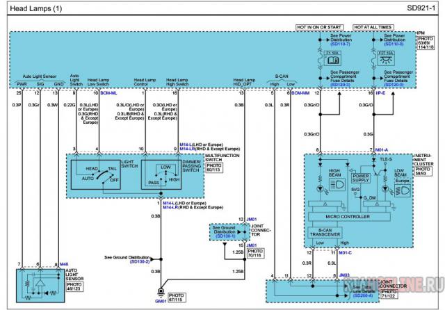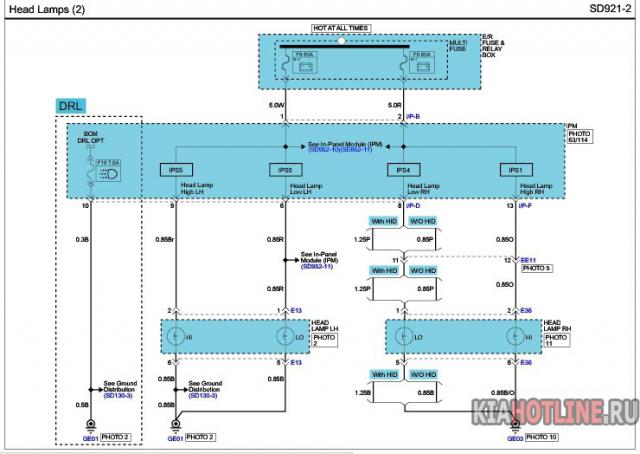 Итак, ПТФ сидят на IPS2, габариты на IPS3 правые и на IPS7 левые блока IPM (блок предохранителей и реле в салоне). По схемам не понятно, как IPS2 зависит от IPS3 (или IPS7