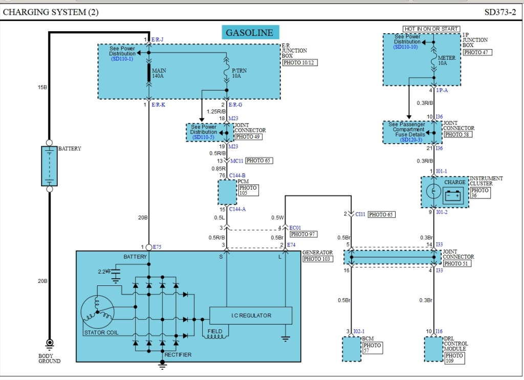 Вот схема зарядки, с контакта №2 E74 идет 12В на №9 I01-2 после запуска двигателя: