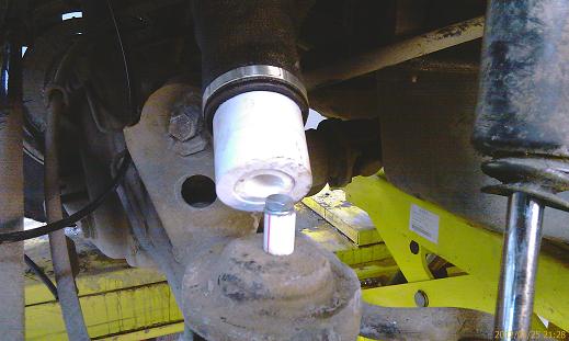 Верхняя часть проставки хорошо села в отверстие верхнего упора пружины. Нижняя часть проставки также подошла по диаметру низа пружины . Чтобы не гуляла нижняя проставка, был установлен кусочек трубы 30-50мм и закреплен болтом на нижней площадке упора пружины на мосту. Все проставки были прикрчены и приклеены к корпусу баллона на болты.