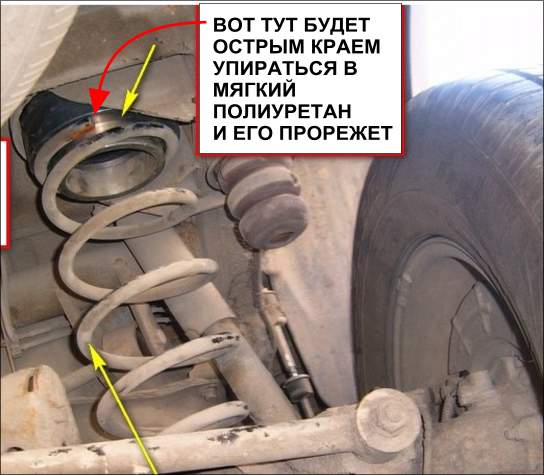 А как ставить полиуретановые проставки? Ведь нельзя же, чтоб в них пружина упиралась? Или я не понимаю чего то?