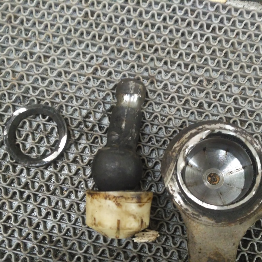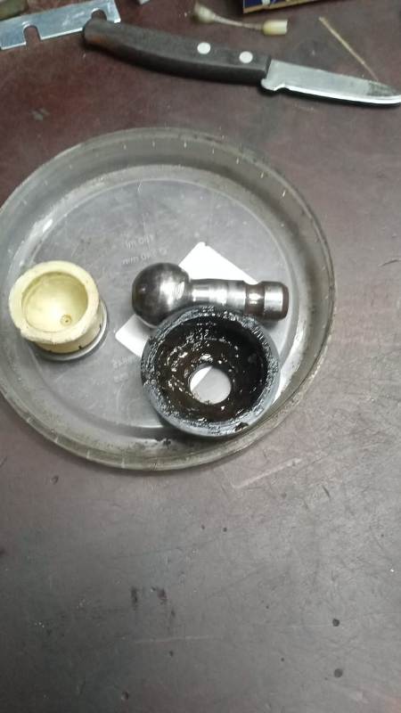 После того, как срезал борт посадочного места пыльника, палец и пластиковая втулка выпали сами из корпуса. Заглянув внутрь корпуса шаровой в нем отчетливо видно центр набитый родным пальцем.