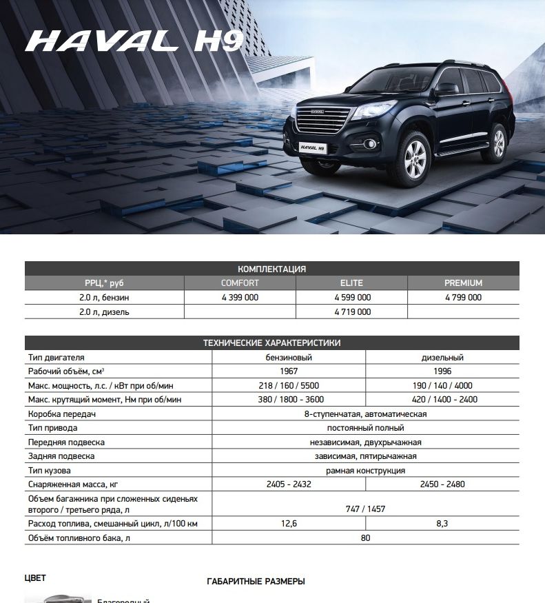 13.05.2022 цена на Haval H9 снизилась на 500 000 рублей, убрана комплектация Comfort у дизельной версии.