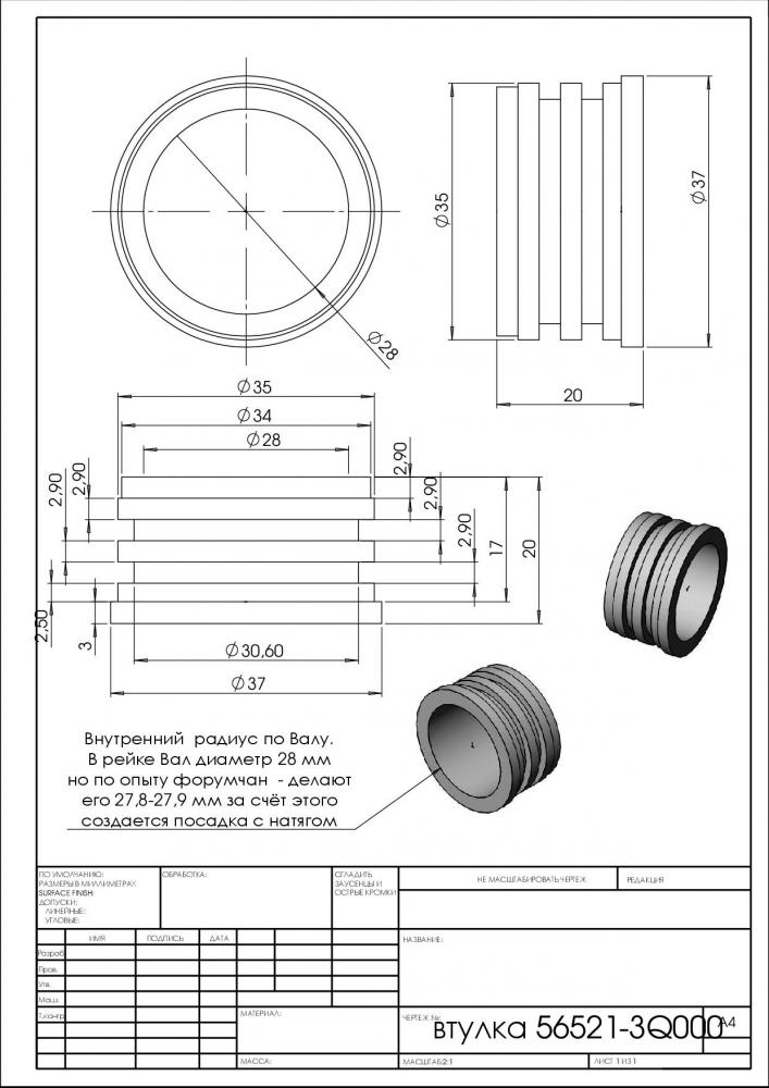 Шикарный материал , думаю завтра закажу втулку , а пропилы сделаю по месту , т.к 27.9мм не полезет на вал 28мм .