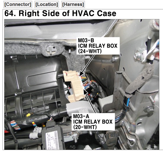 Кнопки включения подогрева подключены к салонному блоку комфорта, он же блок с предохранителями, а уже этот блок управляет релюшками которые живут х.з. где в блоке ICE RELAY BOX, но разьем M03-B находиться справа от вентилятора печки.