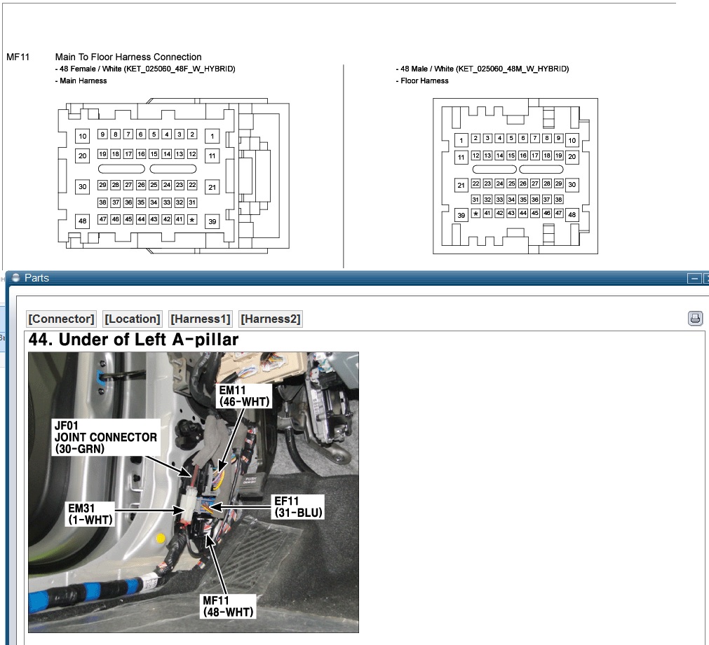 посмотри, пожалуйста, разъем MF-11 где находится и как выглядит? Через него кнопки включения подогрева соединены с салонным блоком комфорта (smart junction box). Спасибо