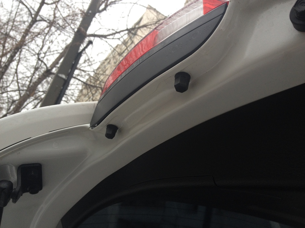 Теперь переходим к двери багажника. Нужно аккуратно отверткой отщелкнуть вот эти 2 заглушки: