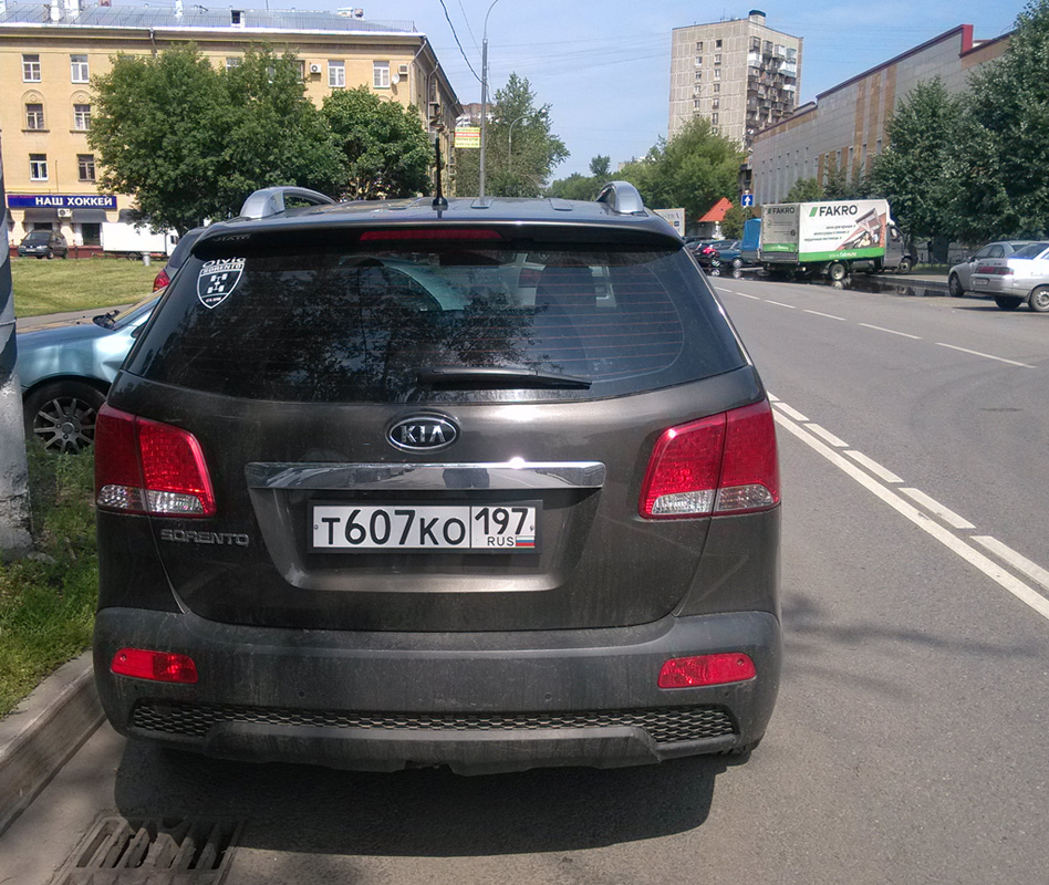 . Разошлись встречными курсами, наклейки увидел уже в зеркало заднего вида, но номер узнал сразу