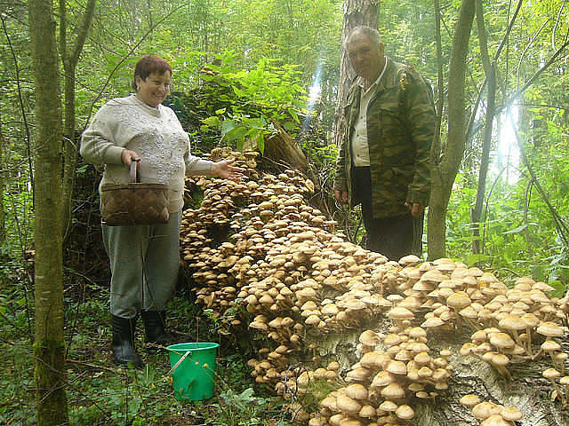 Народ не теряет времени. Вдоль трассы М1 стоянка машин. Из леса выходят озабоченные люди со всевозможной тарой, заполненной белыми грибами и другими тоже, и пакуют в авто.