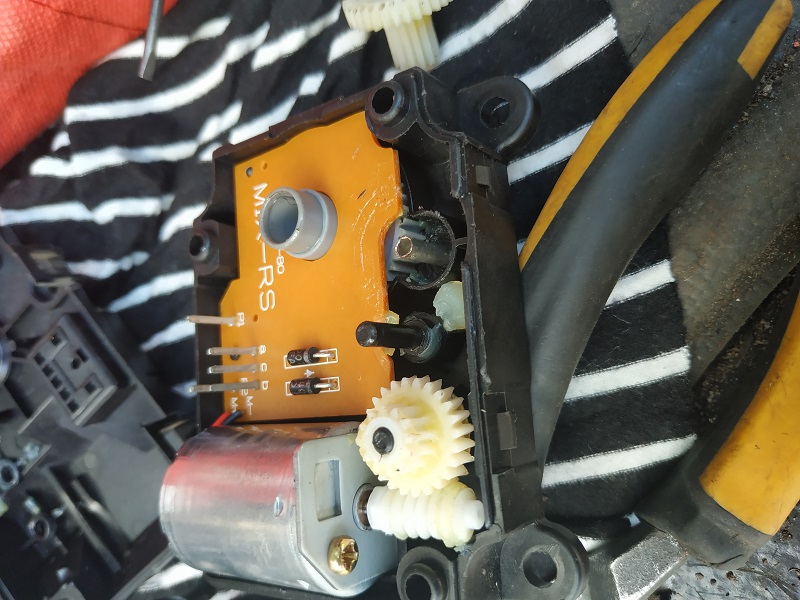Затрещал привод и у меня. Ничего не разбирал, лег на спину и открутил привод короткой отверткой, разъём дольше снимал чем откручивал. Внутри сломана одна из осей. Сделал новую из коротенького самореза и наконечника НШВИ 4,0. Прикручивал обратно с открытой коробкой без средней шестерни, а потом уже вставил шестеренку и закрыл крышку. Все работает, но думаю не на долго т.к. нижняя заслонка ходит труднее чем остальные.