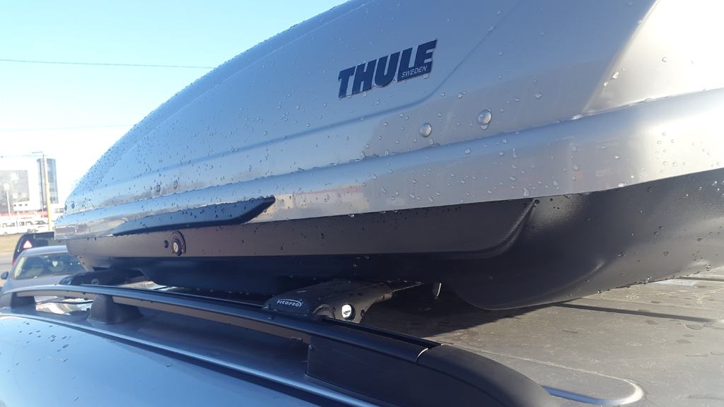 Не снимаю уже 4 года. Всё пучком. Бокс Thule Pacific. Больше 150 с ним не гоняю.