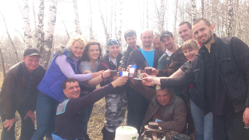 Пока ты где то ходишь, мы за тебя рюмашечку на вылазке жахнули.