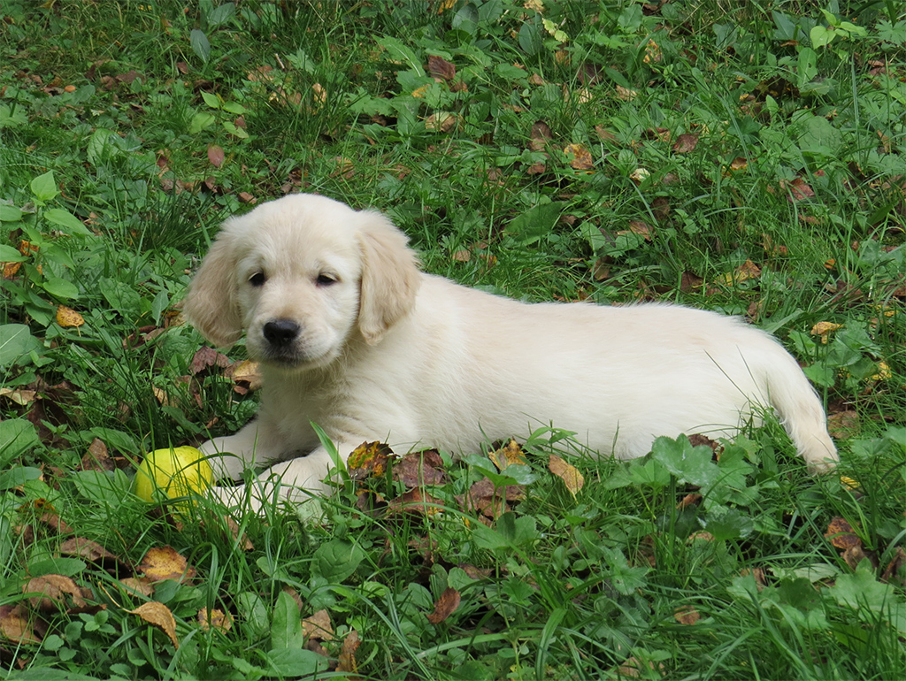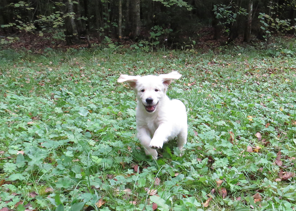 Ну правильно. Это же ретривер, подносчик. У меня лабр, сука. Пока что-нибудь бросаешь , будет носить. Хрен уколотишь, быстрее устанешь бросать или надоест. На прогулке палочку найдёт, притащит, типа: "Поиграем ?"