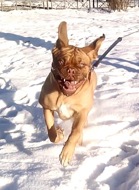 В прыжке мордашка не очень любезная...