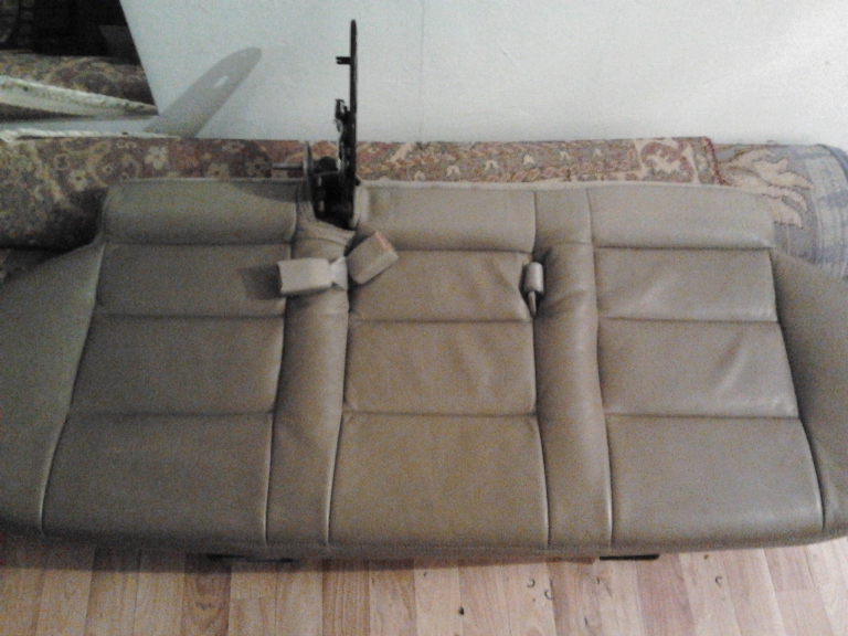 далее снял сиденье,ничего сложного,у меня 7миместный кореец,две гайки и два болта сзади,два болта спереди,на европейцах может по другому,не знаю короче....далее потрошим саму сидуху,делал все интуитивно,особых проблем не было,металлические колечки только без хороших кусачиков неудобно крошить,в итоге получаем такую картину
