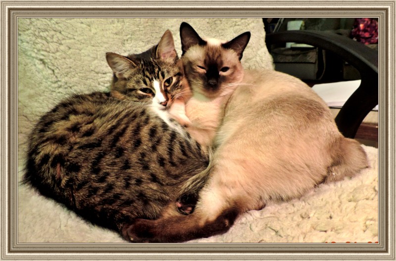 Живет теперь с нами. Дерутся, т.к. оба пацаны, территорию делят. Котейка хороший, смешной, мячик носит, лапу даёт, разговорчивый.