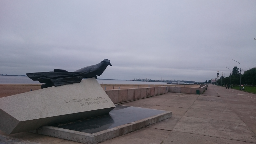 Дальше наш путь лежал через Усть -Пинегу на Холмогоры,через Холмогоры ещё паром на Ломоносово,Родину Михайло Ломоносова.Вообще на паромах мы накатались вдоволь,через Мезень паром бесплатный, а вот по Двине,каждый паром на машину +1 пассажира стоит около 600 руб.