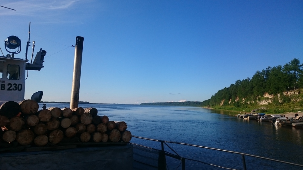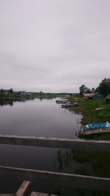 Через Мезень проложен понтонный мост,но из за большого количества осадков,река вышла из берегов и смыла часть моста.Поэтому каждый час курсируют два парома через реку.
