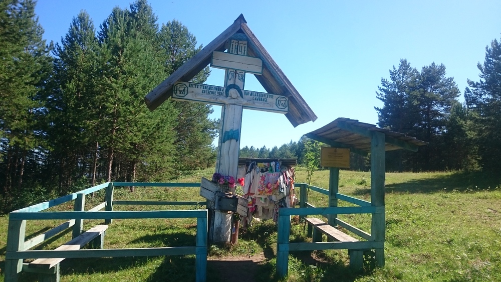 По деревне стоят кресты, мы даже не сразу поняли,сначала думали обетгые.Потом прочитали,что не было кладбищ и людей хоронили на земельных угодиях.
