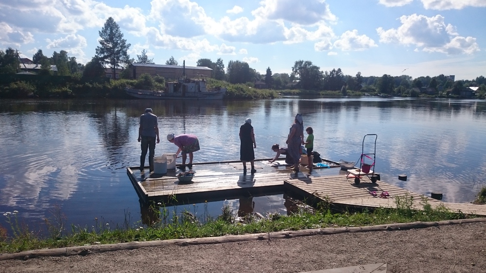 Через Мезень проложен понтонный мост,но из за большого количества осадков,река вышла из берегов и смыла часть моста.Поэтому каждый час курсируют два парома через реку.