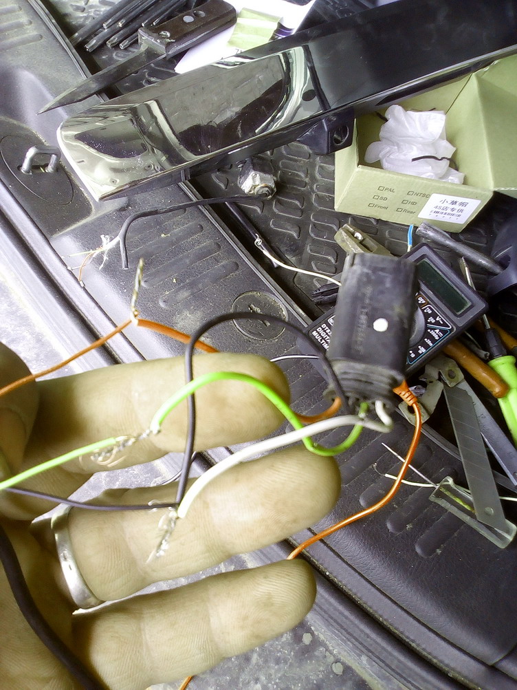 От тройника вдоль электропроводки аккуратно протянул трубку во внутреннюю полость двери к электромагнитному клапану. Сам клапан обернул листовой резиной (чтоб не гремел) и стяжками притянул к двери, используя 2 рядом расположенных отверстия. Клапан подсоединил к массе и к проводу лампы заднего хода, благо фонарь находится на двери, а не на кузове (упрощается прокладка).
