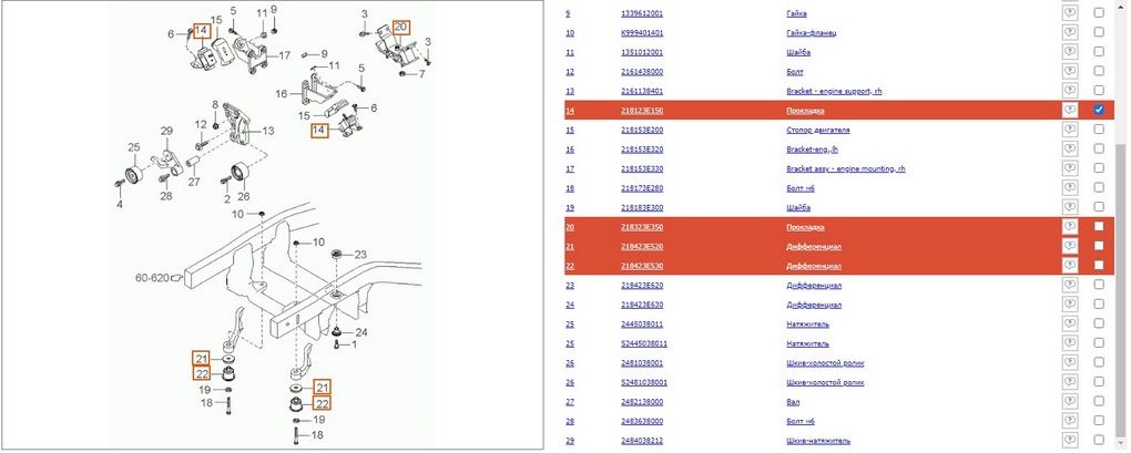 Я так понимаю там две боковых опоры 218123E150? на рисунке №14