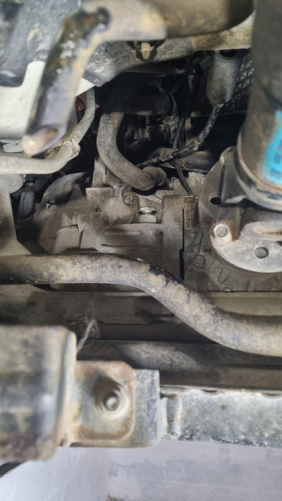 Поменял недавно масло в АКПП по второму разу. Тоже частичной заменой. В этот раз нашел я таки это заливное отверстие. Находится оно у меня не в левой части коробки (если смотреть по ходу движения), как показывал камрад серый016 (сообщение от 15 мая 2020 этой ветки), а практически по центру. Сверху из под капота его не видно, оно полностью закрывается шлангами подачи ОЖ в салон. Снизу и видно, и доступ есть. На фотке пробка залива приоткручена. После слива масла спустил сверху (из под капота) шланг ПВХ с нар. диаметром 11 мм (внутр. 8мм), затем уже снизу с ямы вставил его в заливное отверстие. Зашел шланг плотно и довольно глубоко. Далее сверху вставил в шланг воронку и заливал масло. Заливалось шустренько, благо масло я догадался подогреть дома на батарее. Воздух выходил через сапун. Сколько слил, столько и залил. Уровень поленился проверять.